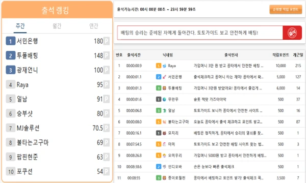 사진설명 : 출석왕을 위한 출석랭킹 표와 출석자들의 코멘트