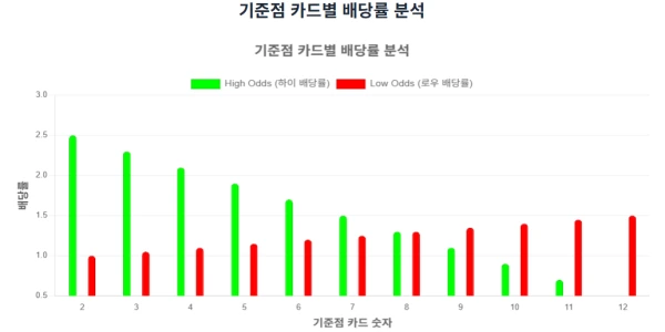 - 기준점 카드 2~3일 때 하이, 10~12일 때 로우에 베팅.
