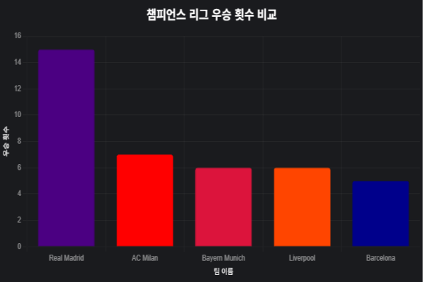 역대 우승 횟수 상위 팀: 레알 마드리드의 압도적 지배력